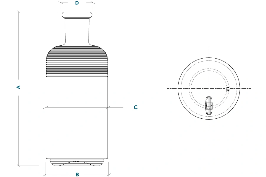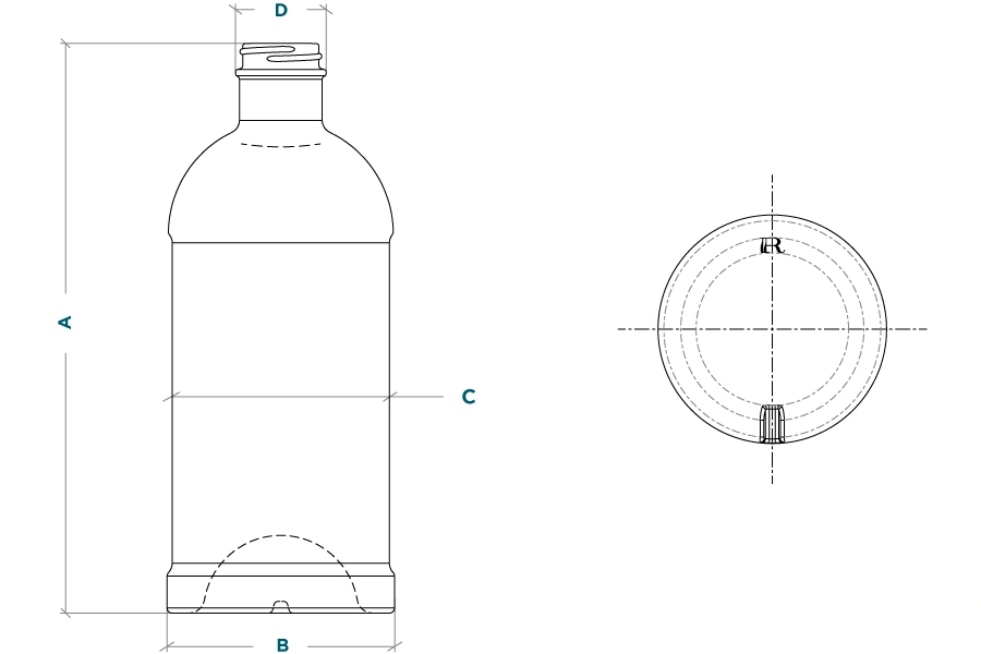 Capacity | Colours | Height (a) | Weight | Brimfull | Body (b/c) | Neck finish (d) |