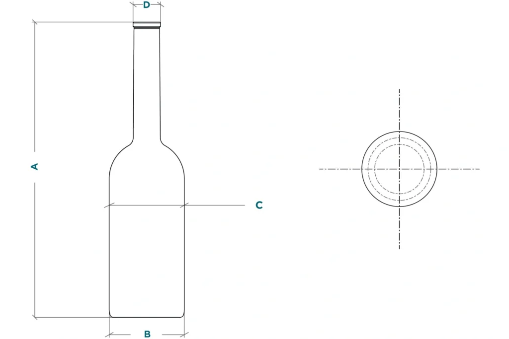 Capacity | Colours | Height (a) | Weight | Brimfull | Body (b/c) | Neck finish (d) |